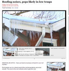 (Article Image and Information from Roofing noises, pops likely in low temps, KFVS 12, January 8, 2014)